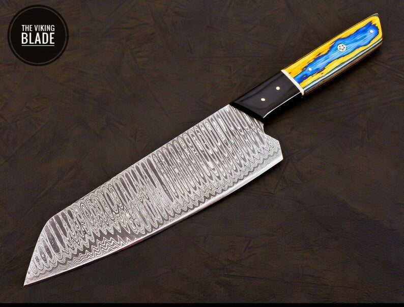 ABOUT THE BLADE:: THE BLADE OF THIS BEAUTIFUL KNIFE IS MADE WITH 1095 + 15N20 HIGH CARBON DAMASCUS STEEL. THE HARDNESS OF THE BLADE IS HRC 50-55.
