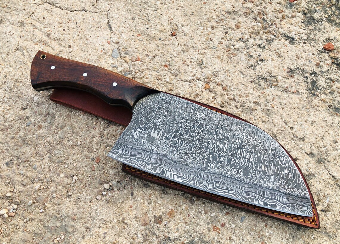 Handmade Damascus Serbian knife with Rose Wood Handle kitchen knife