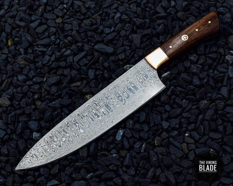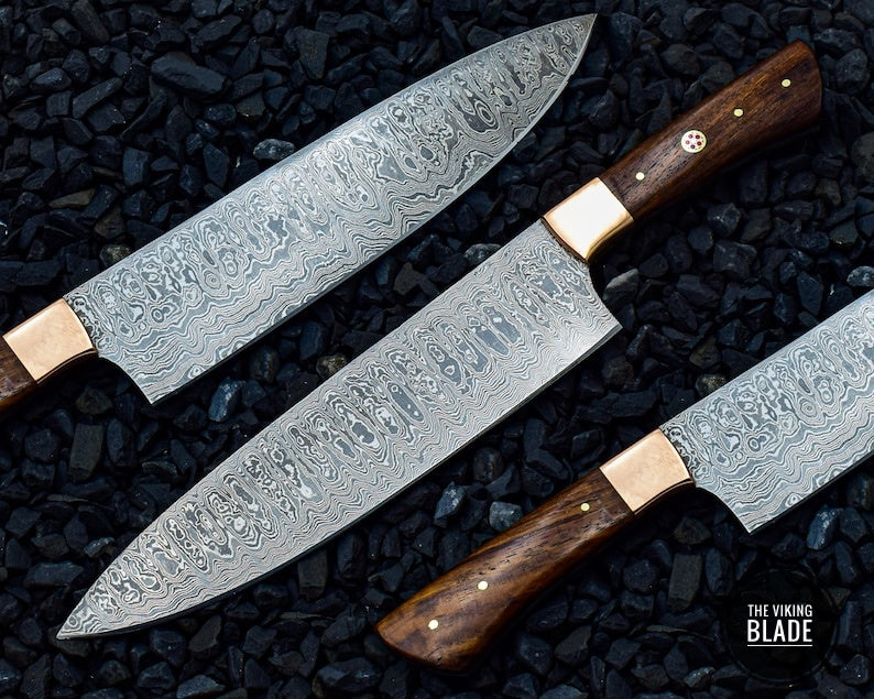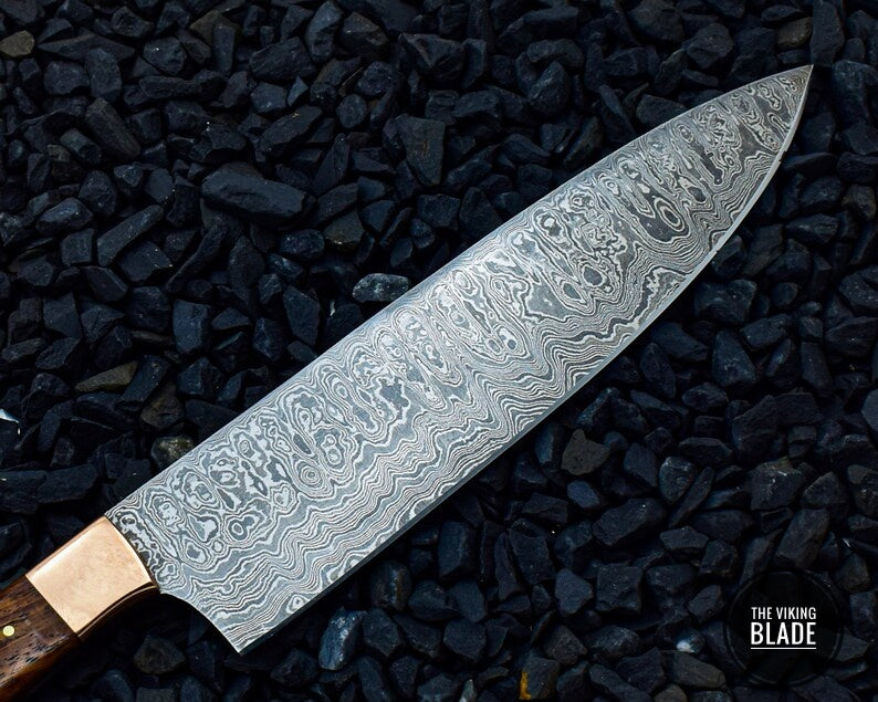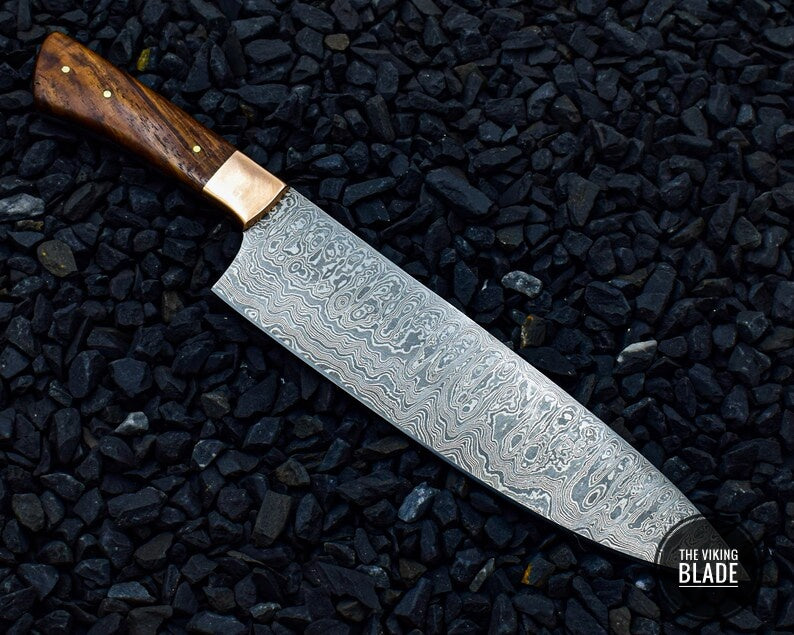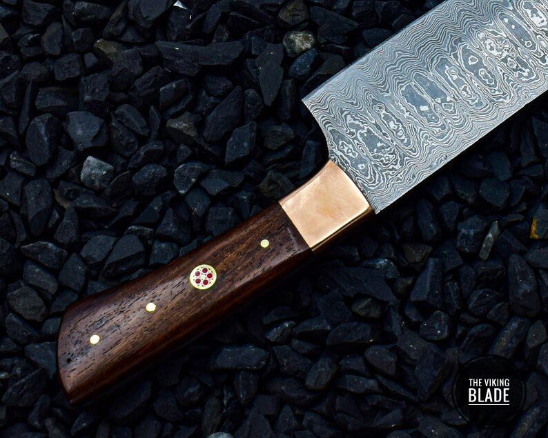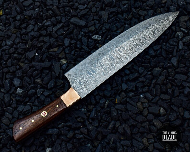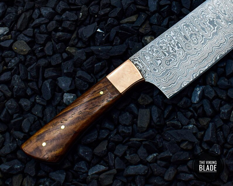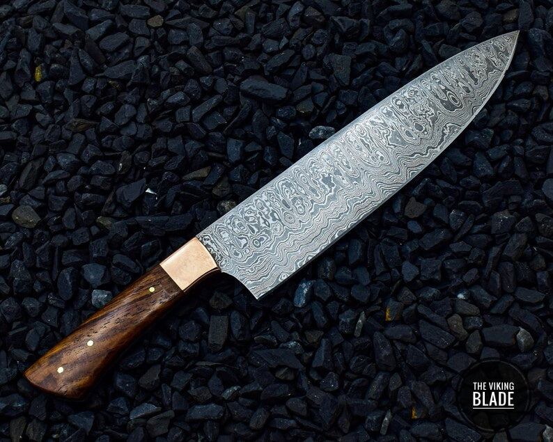 Handmade Damascus Steel Chef Knife Rose Wood Handle With Copper Bolster