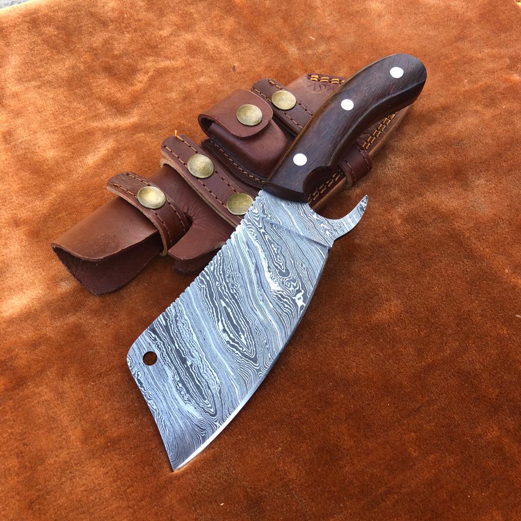 Handmade Damascus Steel Cleaver Chef Knife With Leather Sheath