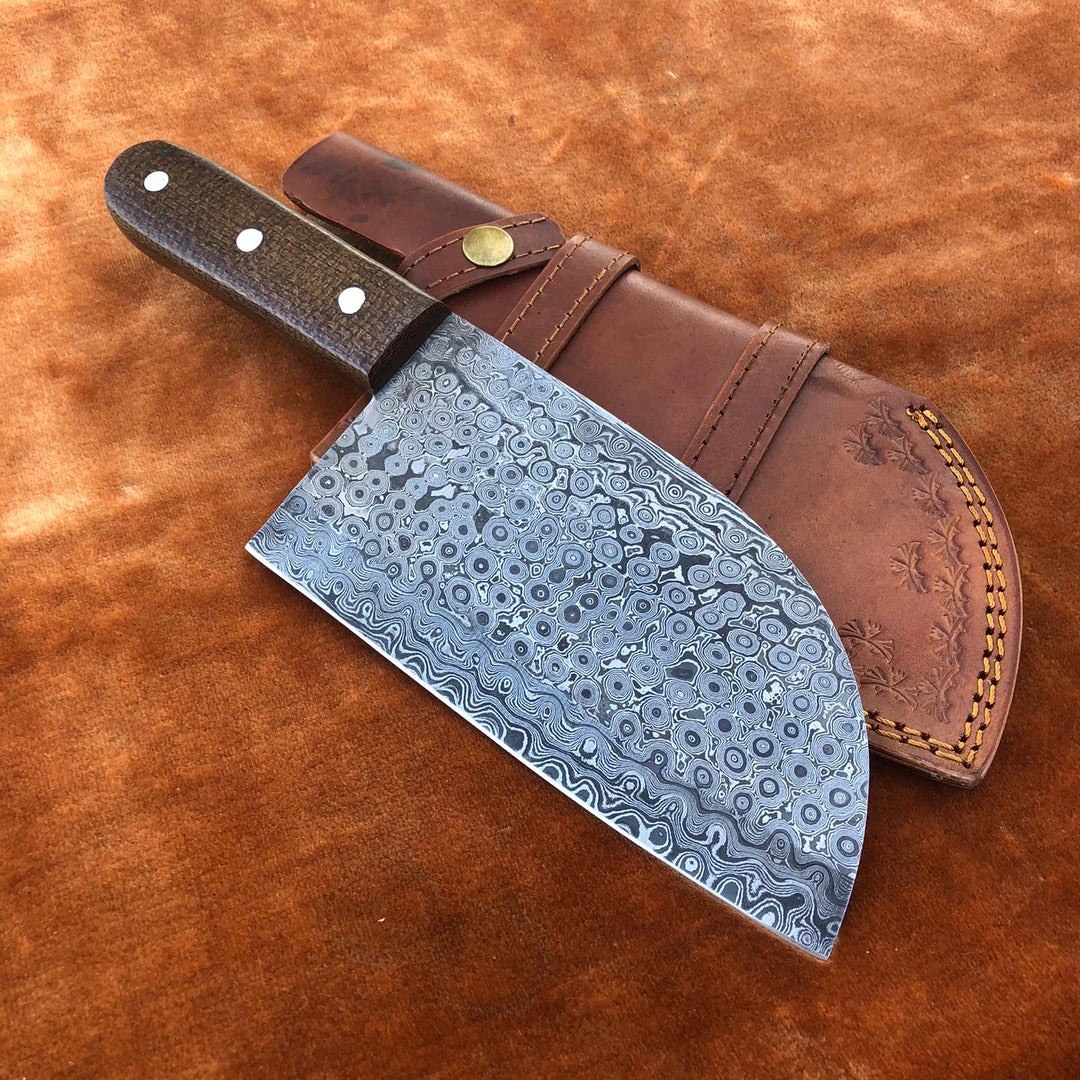 Handmade Damascus Steel Cleaver Chef Knife With Leather Sheath