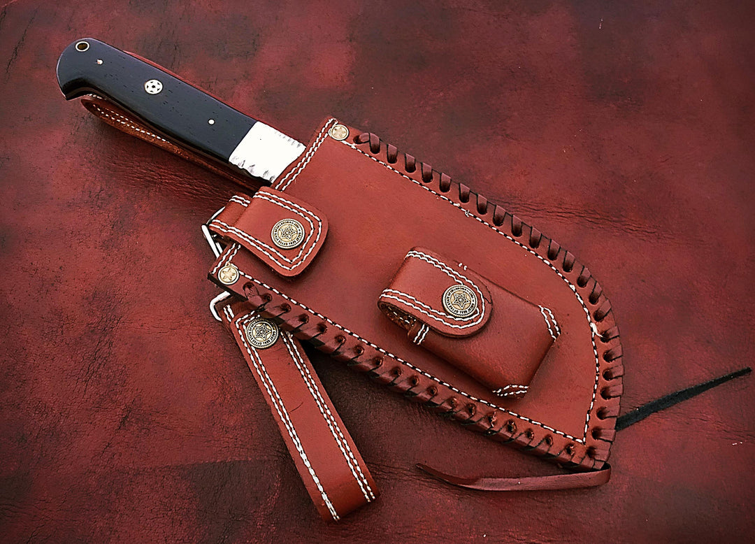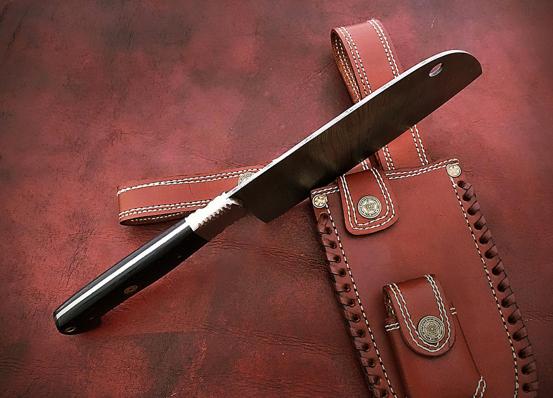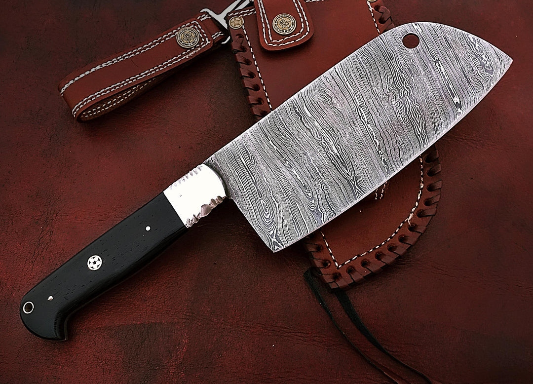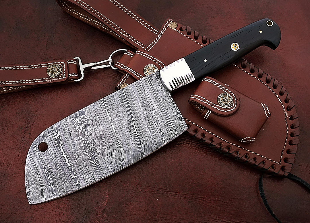 Handmade Damascus Steel Cleaver Knife With Leather Sheath