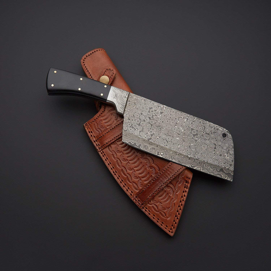 Handmade Damascus Steel Kitchen Chef Cleaver Chopper Knife With Leather Sheath