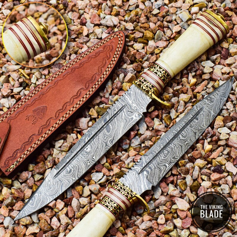 Handmade Damascus Steel Knife with Free Leather Sheath