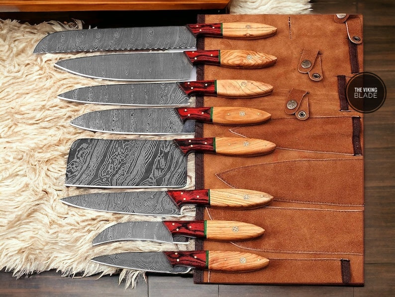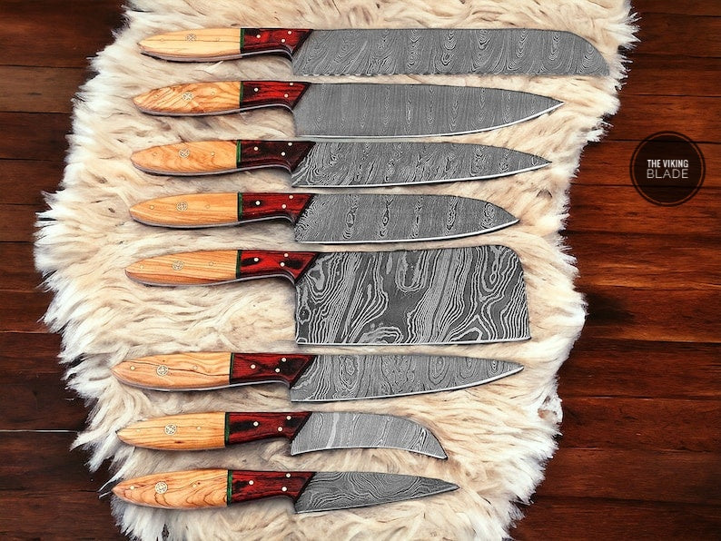 Handmade Professional Kitchen Damascus Knife Set, 8pcs Best Damascus Steel Chef Kitchen Knife set