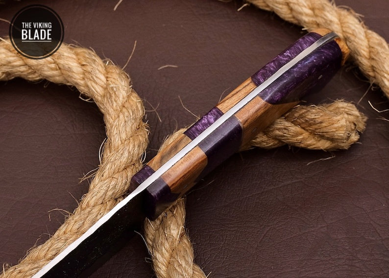ABOUT THE BLADE:: THE BLADE OF THIS BEAUTIFUL KNIFE IS MADE WITH 1095 + 15N20 HIGH CARBON DAMASCUS STEEL. THE HARDNESS OF THE BLADE IS HRC 50-55.
