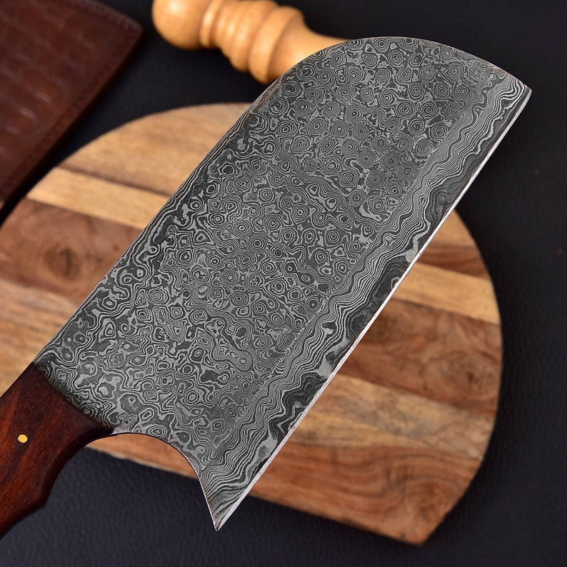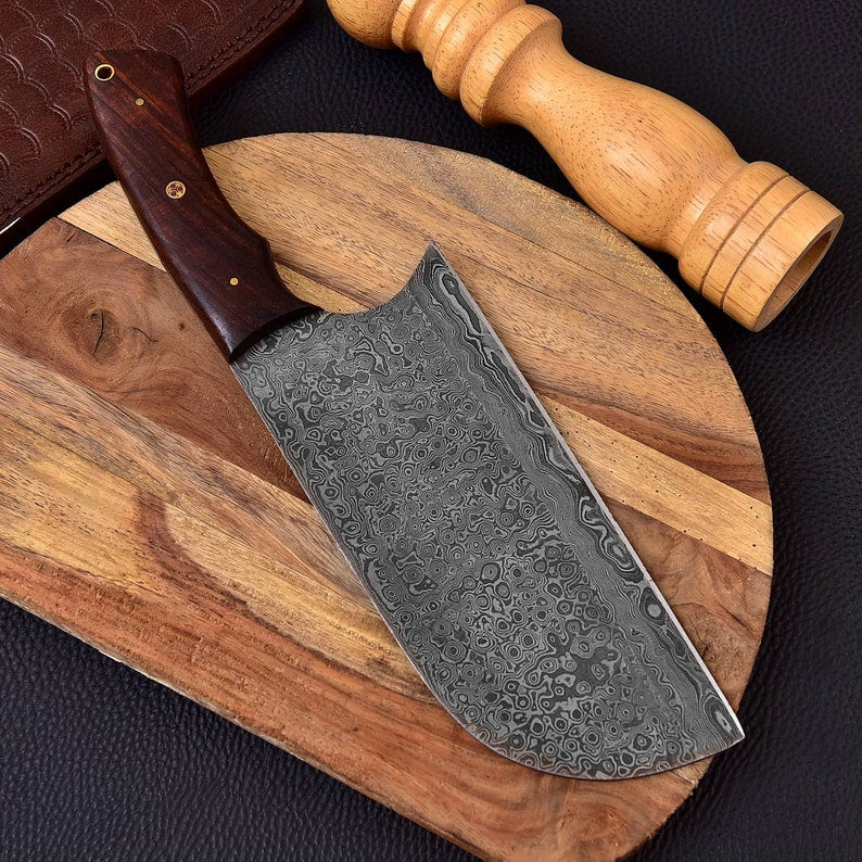 Serbian 12 inches handmade chef cleaver for kitchen with leather sheath