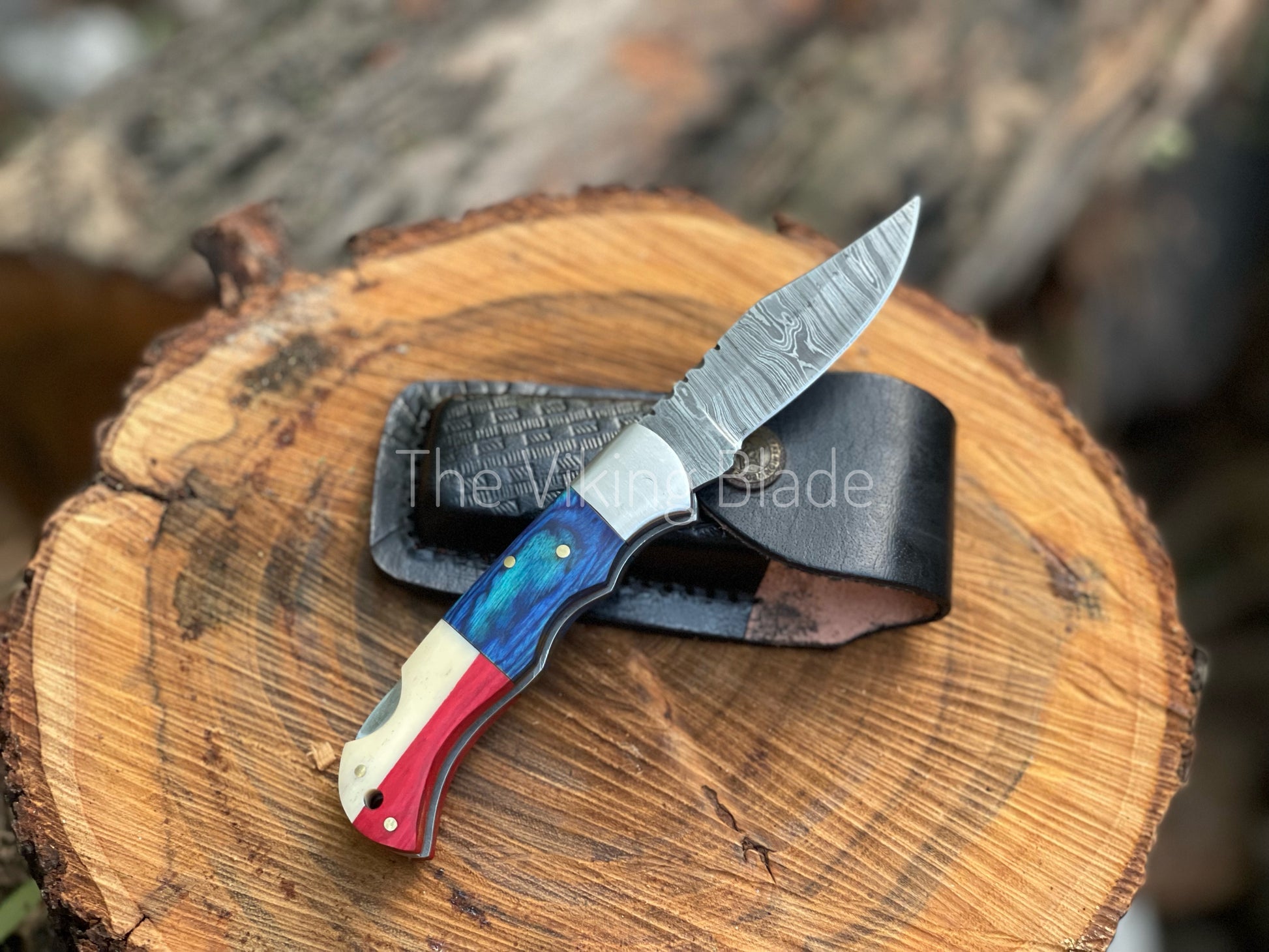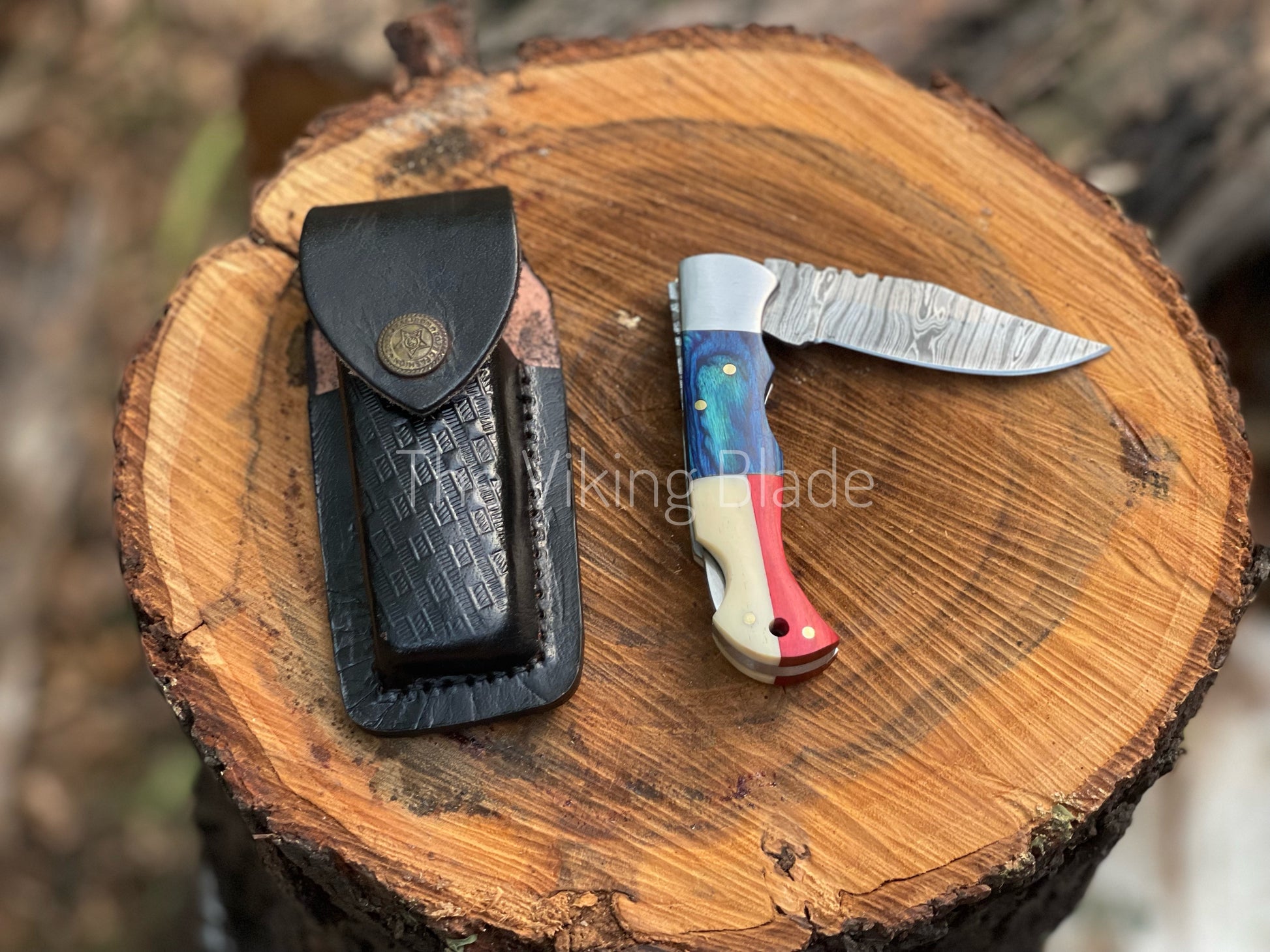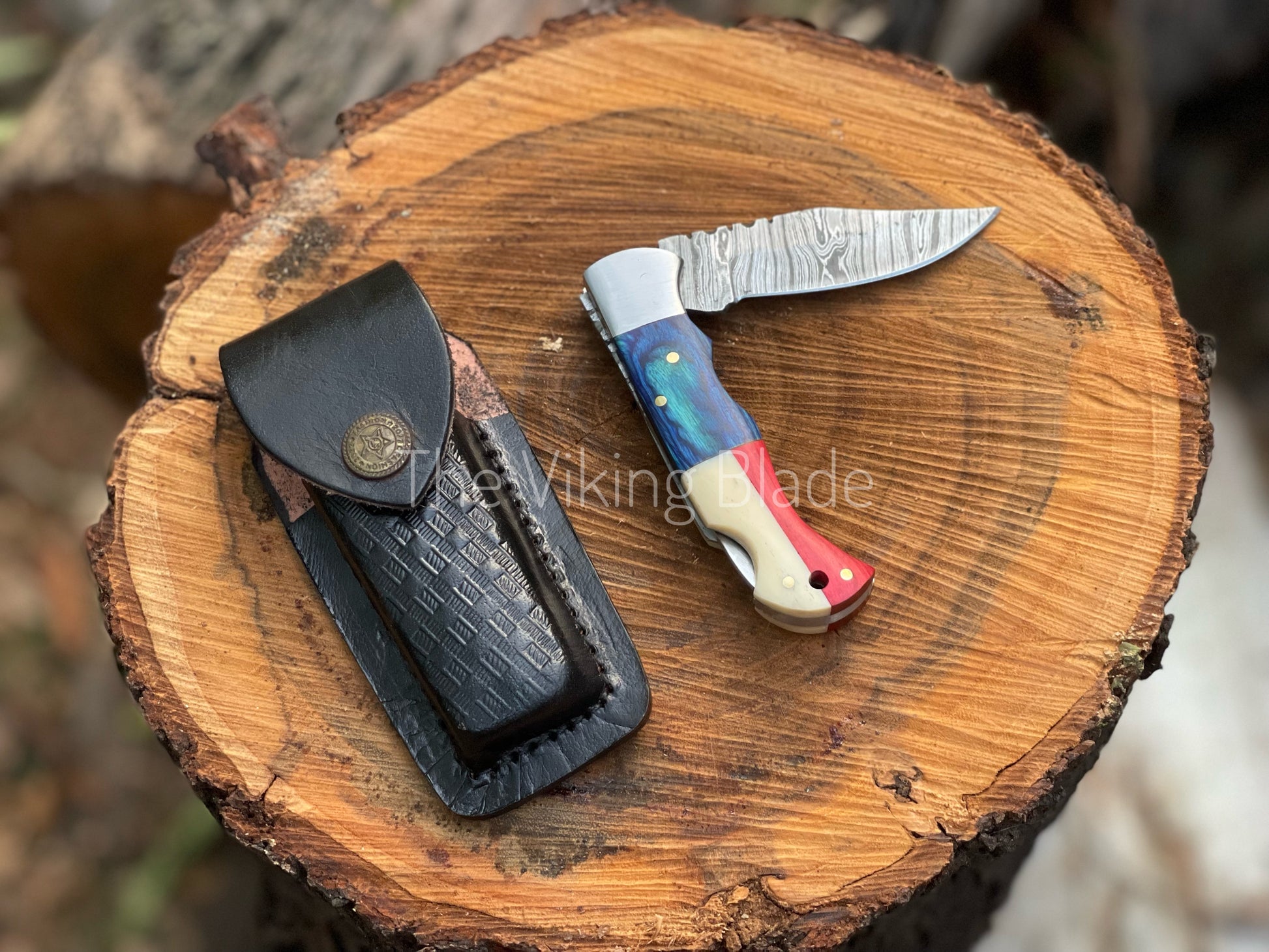 Custom Handmade Damascus Steel Folding Pocket Knife With Leather Pouch