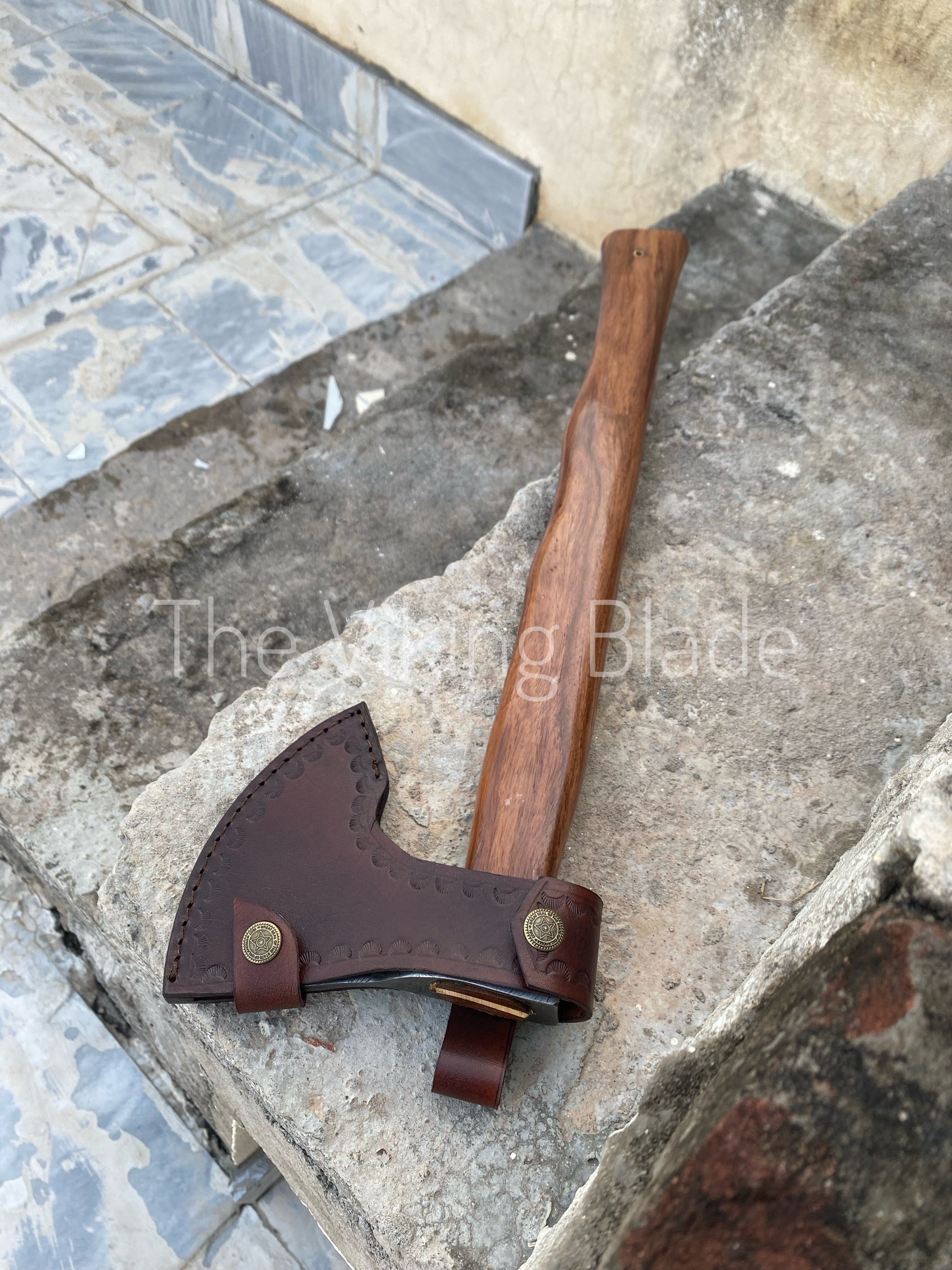 Custom Handmade Damascus Steel Axe With Leather Sheath